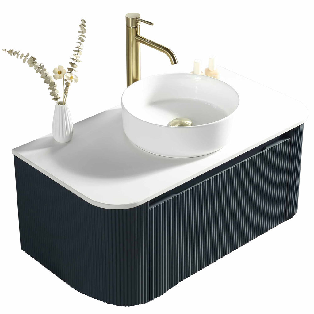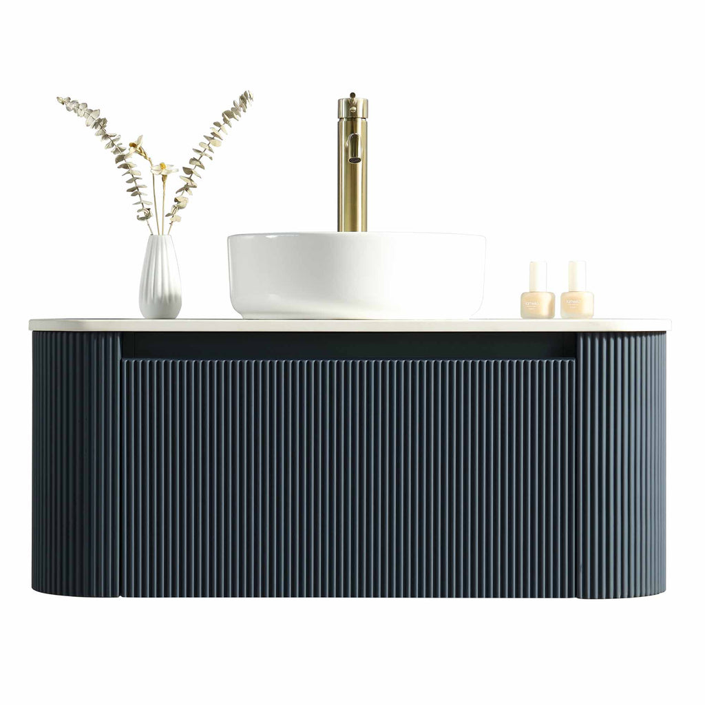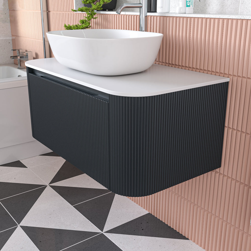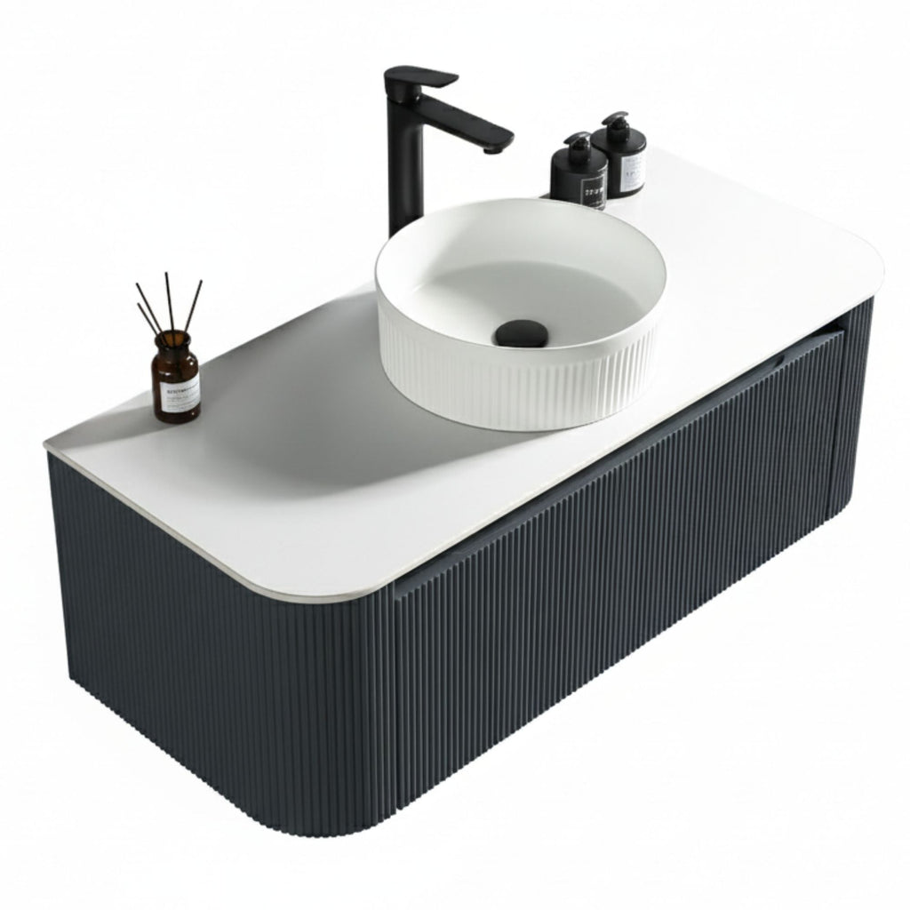 Florence Fluted Curved Wall Mounted Vanity Unit With Worktop - Midnight Shadow