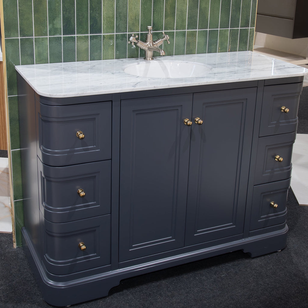 New Hampton 1200mm Floor Standing 6 Drawer, 2 Door Vanity Unit With Worktop and Inset Bowl
