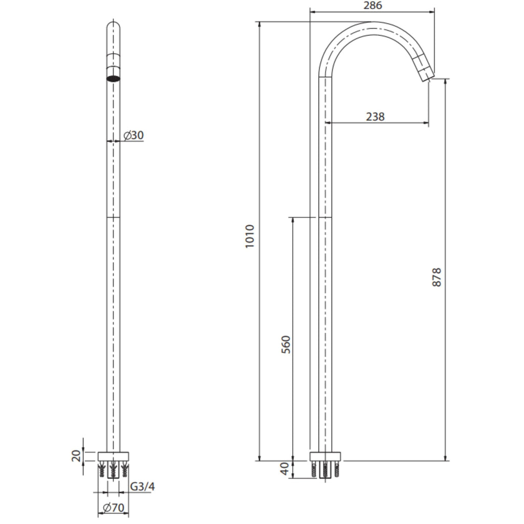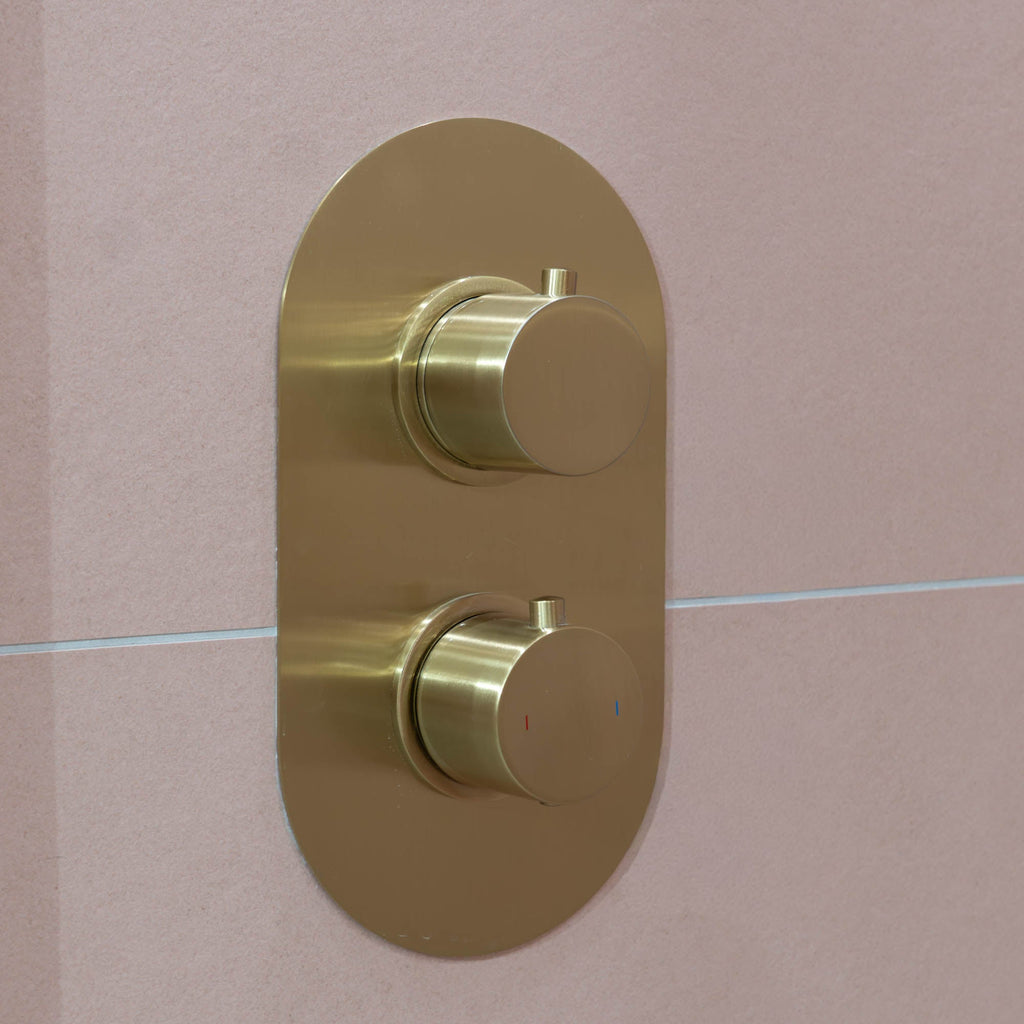 Granlusso Portofino 2 Outlet Thermostatic Shower Valve With Pencil Handset and Freestanding Bath Spout - Brushed Brass