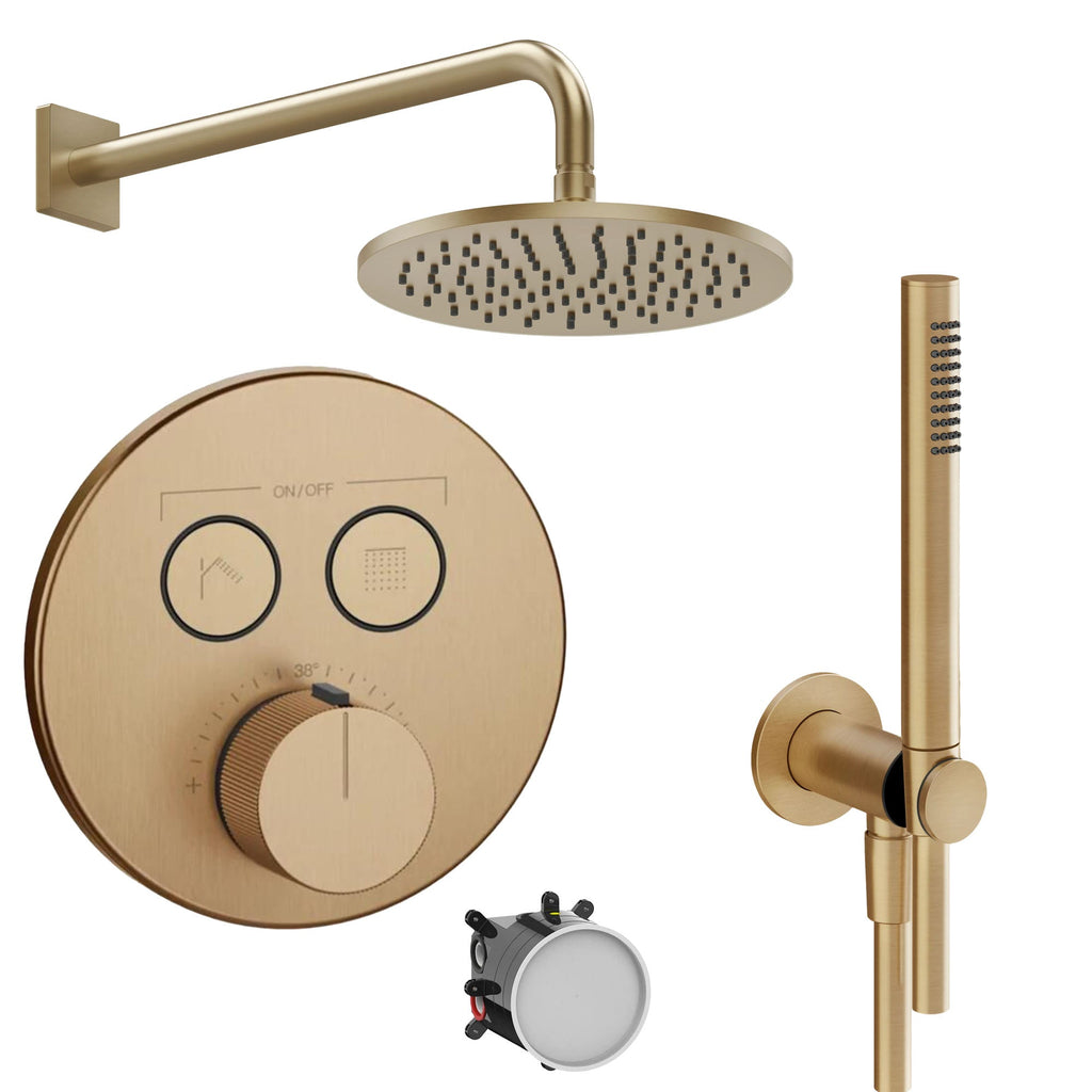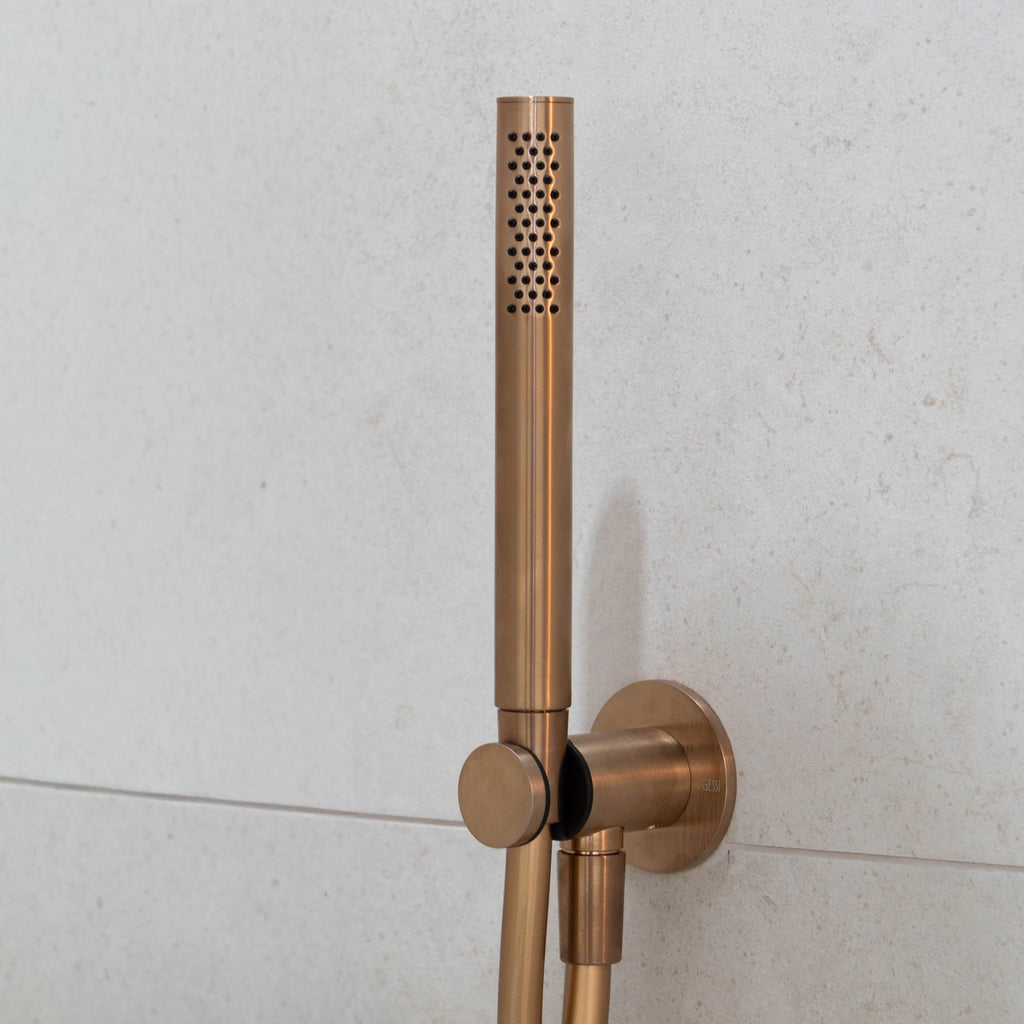 Manzoni Dual Outlet Thermostatic Concealed Shower Valve with Pencil Shower Handset and Shower Head - Warm Bronze Brushed