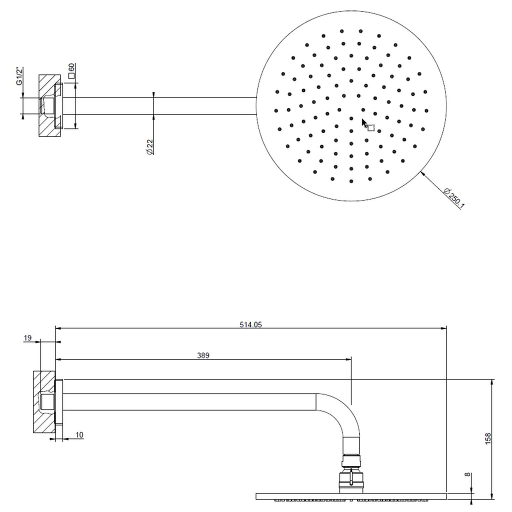 - 250mm Shower Head with Ceiling or Wall Mounted Arm