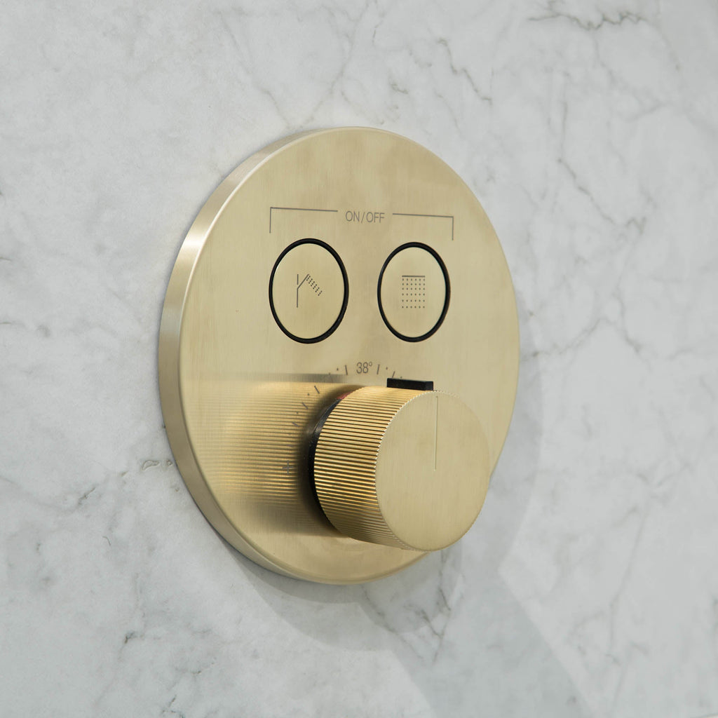Manzoni Dual Outlet Thermostatic Concealed Shower Valve with Slide Rail Shower Handset and Shower Head - Brushed Brass