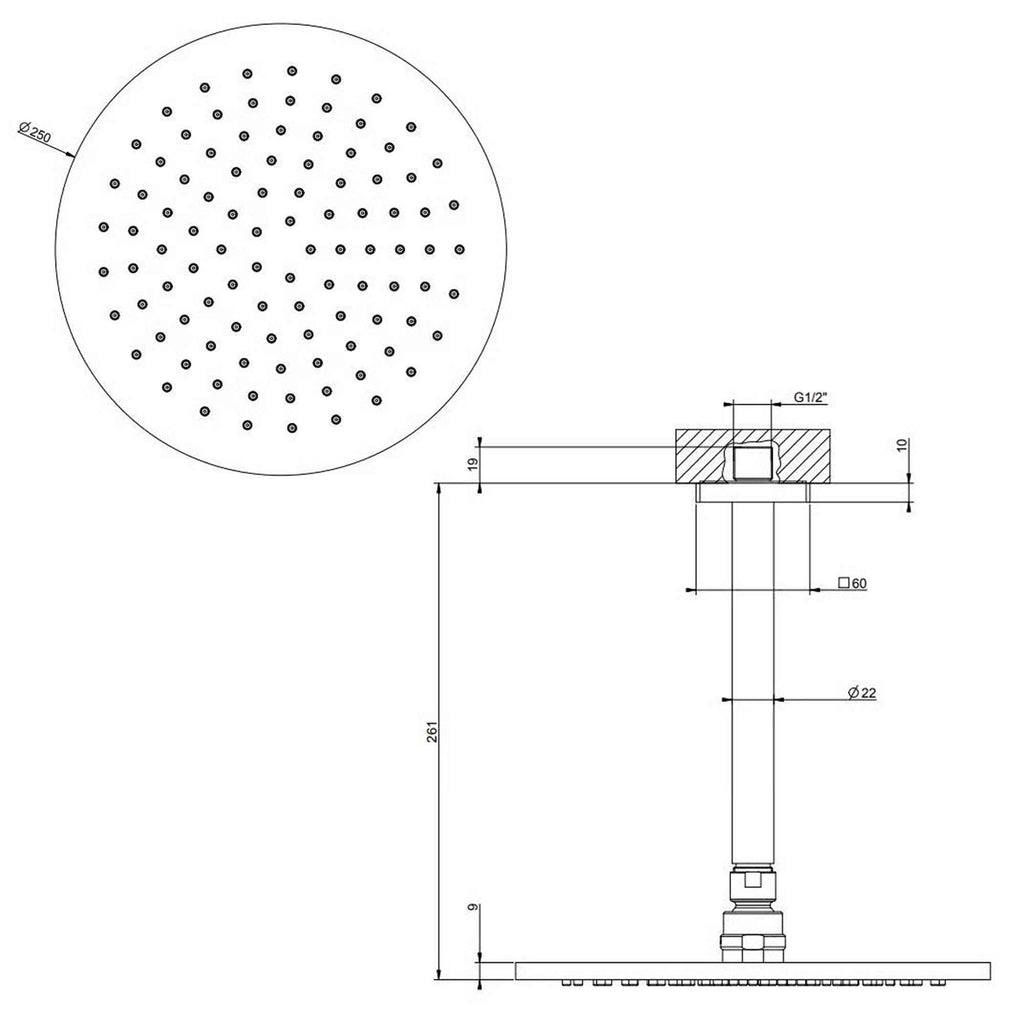 - 250mm Shower Head with Ceiling or Wall Mounted Arm